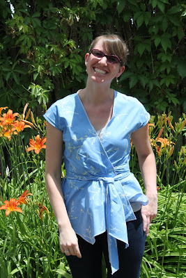 Today I have a casual day of teaching and running some important post Fiber Arts Fiesta Errands so I wore a simple wrap shirt made by me paired with jeans and sandals.